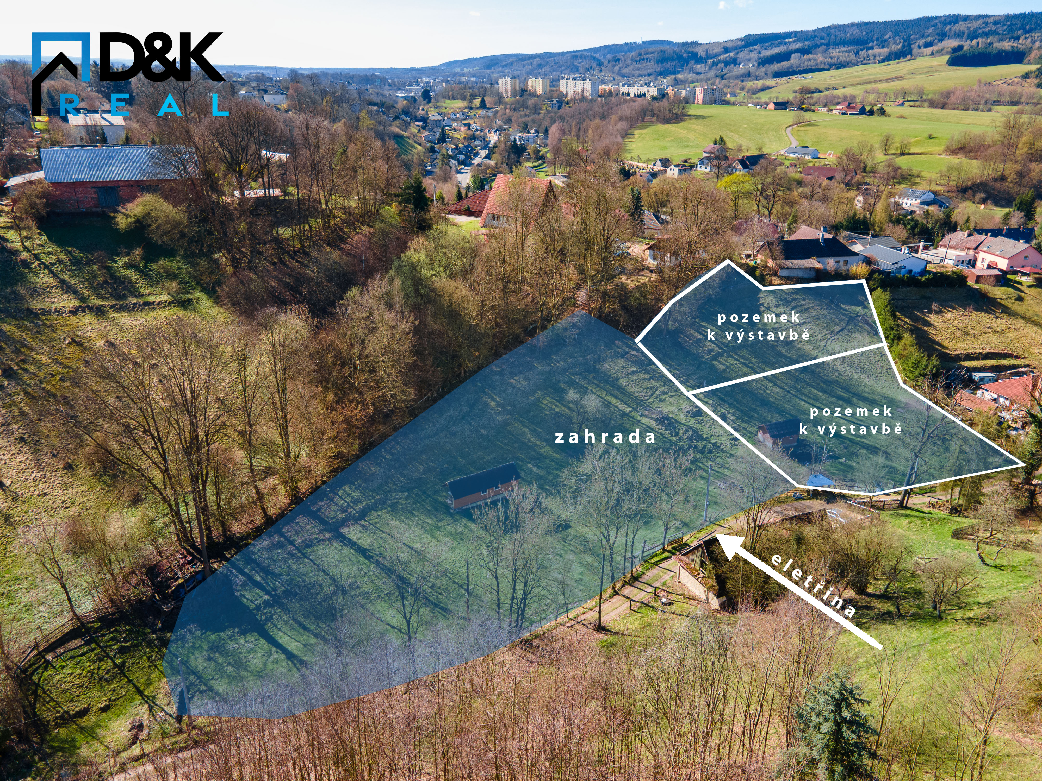 Nabízíme Vám ke koupi soubor pozemků o celkové výměře 5 486 m² v katastrálním území Lhotka u České Třebové. Jedná se o pozemky s výměrou 882 m² a 1644 m², které se podle platného územního plánu nachází v zastavitelném území ve funkční ploše SV - smíšená venkovská zástavba. Tyto plochy je možné využít pro výstavbu rodinného domu. Parcela 222/2 je svažitá a parcela 224, mírně svažitá. Inženýrské sítě - elektřina je vedena na hranici pozemku. Doporučujeme vybudovat si vlastní vrt a ČOV, protože se veřejný vodovod a kanalizace nachází za hranicí pozemku. Dále nabízíme pozemek o výměře 2 960 m², který je veden jako trvalý travní porost, tento pozemek se dá rozdělit na dvě parcely a vložit do územního plánu s možností výstavby rodinných domů nebo si ho ponechat a využívat jako zahradu. Tato parcela je mírně svažitá. Aktuálně zde stojí dvě chaty, které slouží jako přístřešky pro domácí zvířata. Pozemky se nachází na slunném a klidném místě s obecní příjezdovou cestou. Je odsud dobrá dojezdová vzdálenost do České Třebové nebo blízkého Ústí nad Orlicí. S financováním Vám může pomoci naše hypotéční poradkyně. Pokud Vás tato nabídka zaujala, zavolejte nám pro podrobnější informace a domluvíme se na prohlídce, budeme se na Vás těšit.